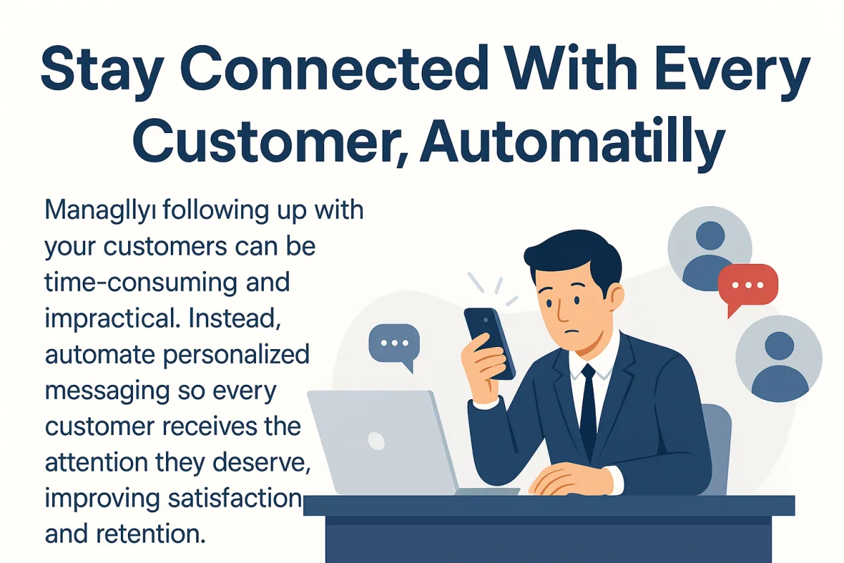 Never let a customer slip through the cracks again. Business owners lose thousands each year simply because they don’t have the time to follow up consistently. Missed calls, forgotten emails, or late reminders cause customers to drift away. With automated communication, every lead and customer gets the right message at the right time — whether it’s a thank-you, an appointment reminder, or a special offer.